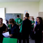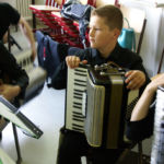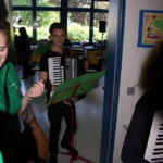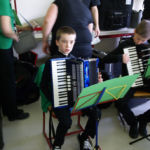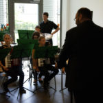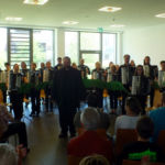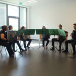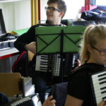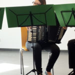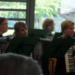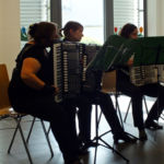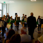 Den Grundstein legte mit seinem Auftritt als erste Gruppierung am Morgen das Ensemble. Mit dem Vortrag waren die sechs Akkordeonspieler sowie Ensembleleiter Ronny Fugmann sehr zufrieden. Aufgrund der frühen Vorspielzeit war es für die Gruppierung allerdings eher eine Aufführung vor eigenen Leuten. Der komplette Verein kam schon früh zum Zuhören und da alle ihre grünen Vereins-T-Shirts angezogen hatten, konnten wir den Vorspielraum gleich einmal in eine einheitliche Farbe kleiden.