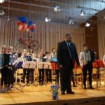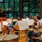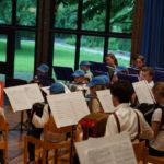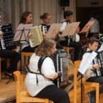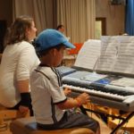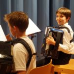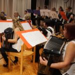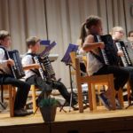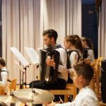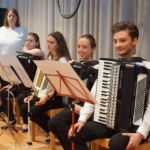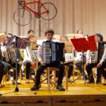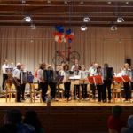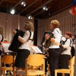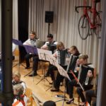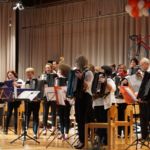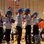 Den Anfang des Konzertabends gestaltete das Jugendorchester. Nach einigen Stücken gesellte sich außerdem das Schülerorchester dazu, sodass über 30 Kinder auf der Bühne Platz fanden. Ein beeindruckendes Bild. Zusammen trugen sie ein Medley aus typisch französischen Kinderliedern vor.