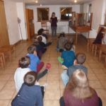 Am nächsten Morgen weckten wir alle mit Kochlöffeln und Topfdeckeln. Lärmend marschierten wir durchs Haus bis alle aufgewacht waren. Danach gab es Frühstück. Nun wie immer: Probe, Pause, Essen, Probe, Pause … So lief auch dieser Tag ab. Abends gab es noch einen lustigen Speielabend, der von unserer Jugendleiterin Elena geplant wurde.