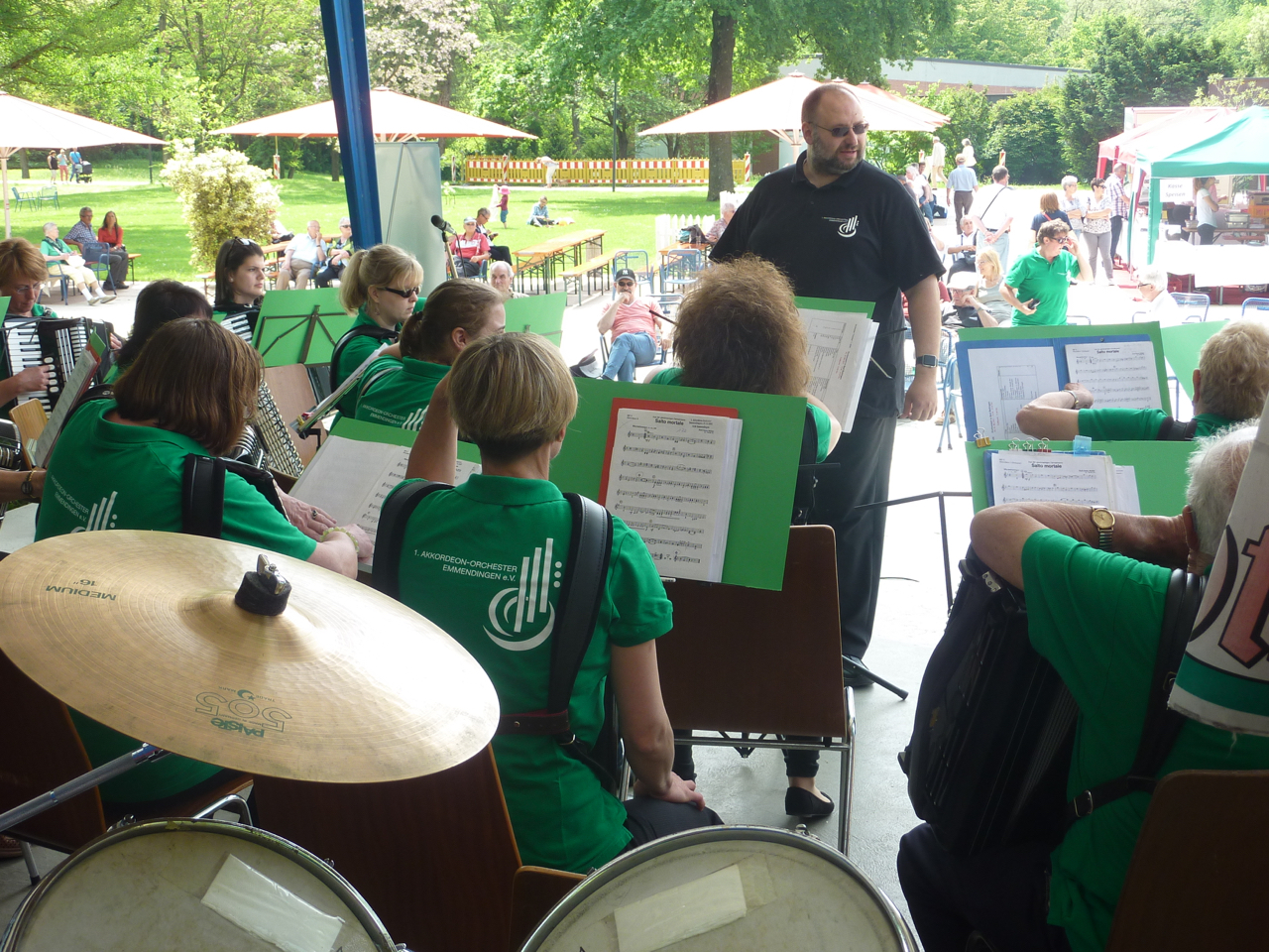 Am gestrigen Feiertag hatte unser Orchester „Tonika“ einen Auftritt bei herrlichstem Sommerwetter im Kurpark von Bad Bellingen. Zusammen mit dem „Ersatzdirigenten“ Ronny Fugmann boten die Spieler den Zuhörern im Park ein einstündiges, gut durchmischtes Programm. Neben einigen Hock-Klassikern, wie „Les Humphries“ und „Rock around the clock“, waren auch schon einige der Konzertstücke zu hören, die das Orchester im Juli beim Sommerkonzert aufführen wird.