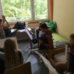 Auf eine vollkommen unbekannte Hütte machten sich dieses Jahr die Spieler des Jugendorchesters auf. Es ging in das Haus Waldhof in die Nähe von Schweighausen. Die Hütte kam bei allen Spielern sehr gut an, bei manchen wegen der Spülmaschine, bei anderen wegen dem Fußballplatz, dem großen Probenraum oder dem Massagesessel. Wie immer fanden viele Proben statt, was man am Ende der Hütte auch deutlich gehört hat. Dank Spaghetti, Käsespätzle, Schnitzel und Raclette kam auch keinerlei Hunger auf. Schon zur Tradition geworden ist ja mittlerweile der Spieleabend am ersten Tag. Bis nach Mitternacht spielten die beiden Gruppen gegeneinander in den verschiedensten Spielen um den Tagessieg.