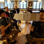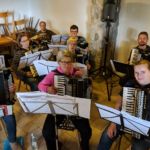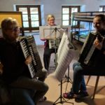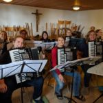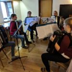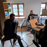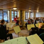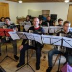 Zwei Wochen nachdem das Jugendorchester sein Probenwochenende hatte machten sich auch die Konzertorchesterspieler auf nach Simonswald zum altbewährten Ibichhof. Am Freitagabend gab es zur Stärkung erst einmal für alle ankommenden ein ausführliches Surprise-Buffet. Gestärkt konnte dann spät am Abend noch eine erste „Durchspielprobe“ stattfinden. Aber auch noch nach der Probe klangen Akkordeonklänge durch das Haus. Wir hatten wieder einen ganzen Stapel voller alter Noten mitgenommen, die ein Teil der Spieler zum Spaß durchspielte. Dabei wurden munter die Stimmen hin und her getauscht. Der andere Teil der Gruppe startete im Nebenraum schon einmal die Küchenparty.