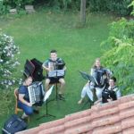 Unser Ensemble hat sich dazu entschlossen auch während der Sommerferien weiter zu proben. Da wir in den Ferien unseren neuen Probenort nicht nutzen dürfen und unser eigentlicher Probenort aufgrund von Corona auf noch unbestimmte Zeit nicht genutzt werden darf, gab es gestern eine Gartenprobe, da wir uns aktuell nicht in irgendein Wohnzimmer zwängen wollten. Zwischen Nuss- und Pflaumenbaum konnten so alle Nachbarn zwei Stunden lang Mozart hören. Unser Ensemble hat sich übrigens Ende letzten Jahres stark verjüngt. Unsere Mamas/Papas pausieren aktuell im Ensemble. Deswegen proben wir seit Januar als Quartett mit zwei neuen Mitspielern in der 2. und 3. Stimme. Herzlich willkommen Felix und Tabea. Aufgrund von Corona hatten wir natürlich noch nicht so viele gemeinsame Proben und gestern war es für diese Gruppierung Premiere ohne Dirigenten zu proben. Nun bleiben wir optimistisch, dass wir die Ergebnisse unserer Probenarbeit Ende November bei unserem Herbstkonzert vortragen können. Außerdem haben wir uns fest vorgenommen nächstes Jahr im Frühjahr als Ensemble mal wieder beim Bezirkswettbewerb anzutreten. Dafür studieren wir bereits jetzt ein Divertimento von Mozart ein. Außerdem hat Ronny extra für unsere neue Besetzung ein Stück komponiert, welches wir im Herbst dann uraufführen wollen. Es sei schonmal soviel verraten, dass bei diesem Stück nicht nur Töne ein wichtiger Bestandteil sein werden