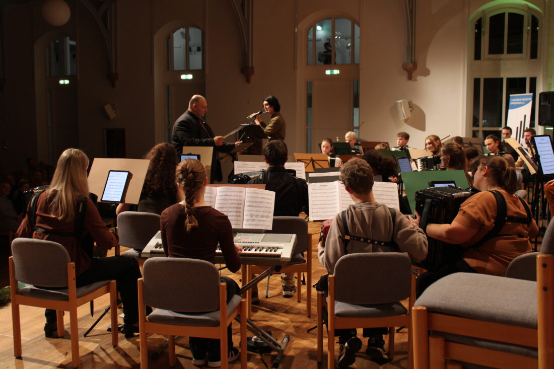 Die musikalische Gesamtleitung über das Konzert lag bei Ronny Fugmann, charmant und mit interessanten Informationen zu den einzelnen Stücken führte Danilo Knab durch das Programm. Geehrt wurden Alina Vogel, Louis Danberg, Joas Müller, Tobias Hönisch, Nathan Grafmüller (10 Jahre), Julian Eble (20 Jahre), Anja Seitz, Stephanie Löffler (30 Jahre) und Melanie Reich (10 Jahre Ehrenamt).