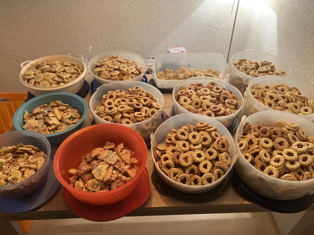 Dank der vielen kleinen und großen Hände schafften wir es tatsächlich in 3 Stunden 45 Teige zu verbacken. Nächstes Wochenende findet man dann das 1.AOE mit einem Stand voller leckerer Plätzchen beim großen Emmendinger Weihnachtsmarkt.